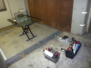 本職のガラス屋さんは手際がいいですよ、あっという間にフロントガラスは外れていきます