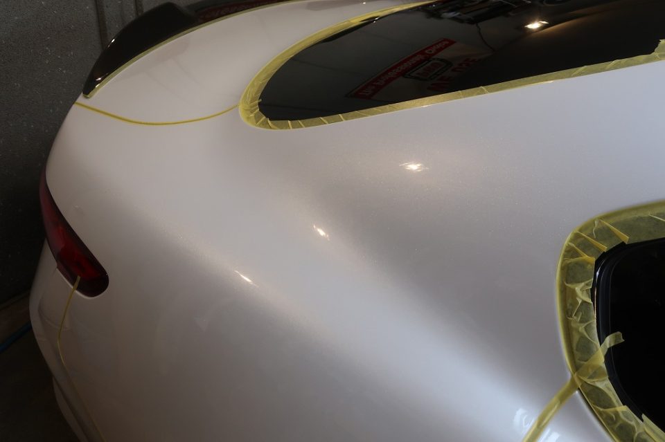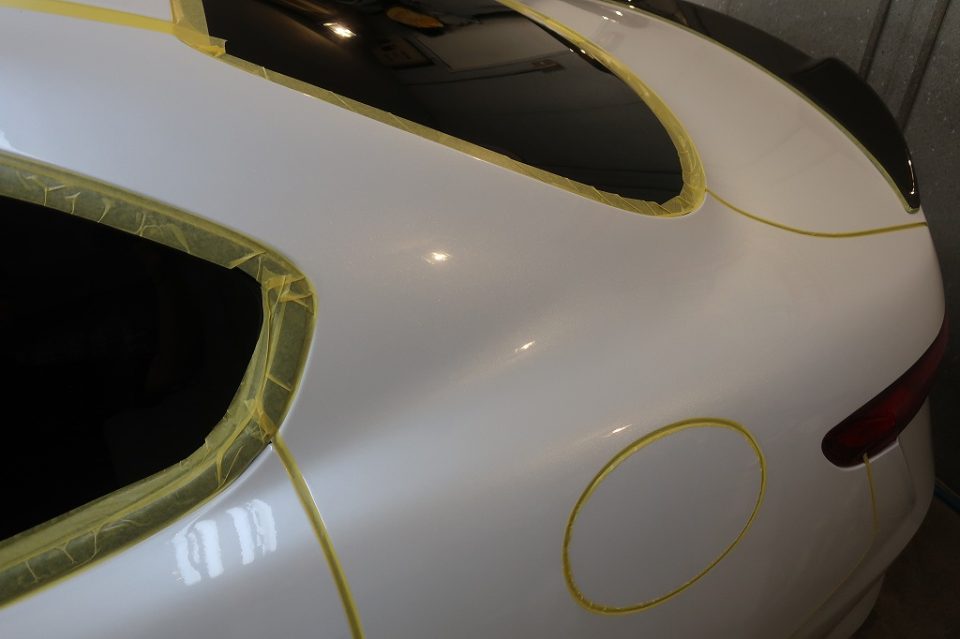 車のコーティングではマスキング作業が重要です、特にプレスラインやエッジ部分は要注意