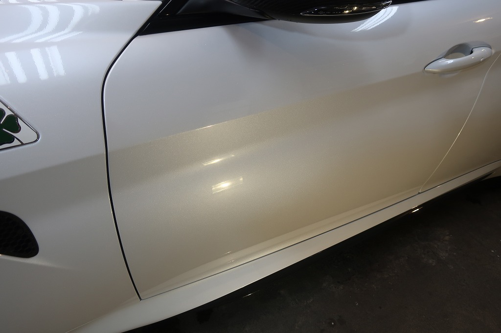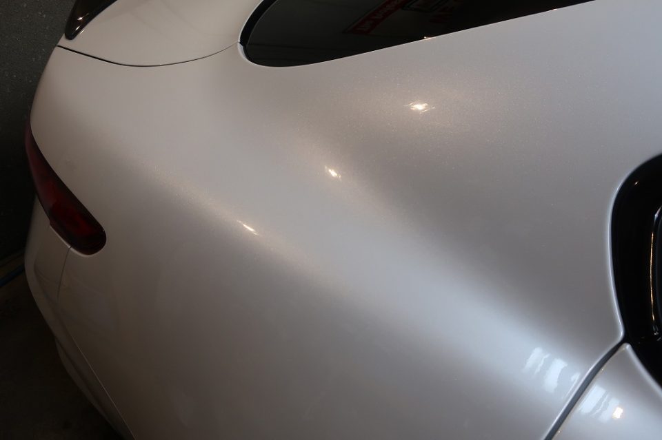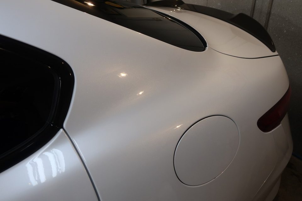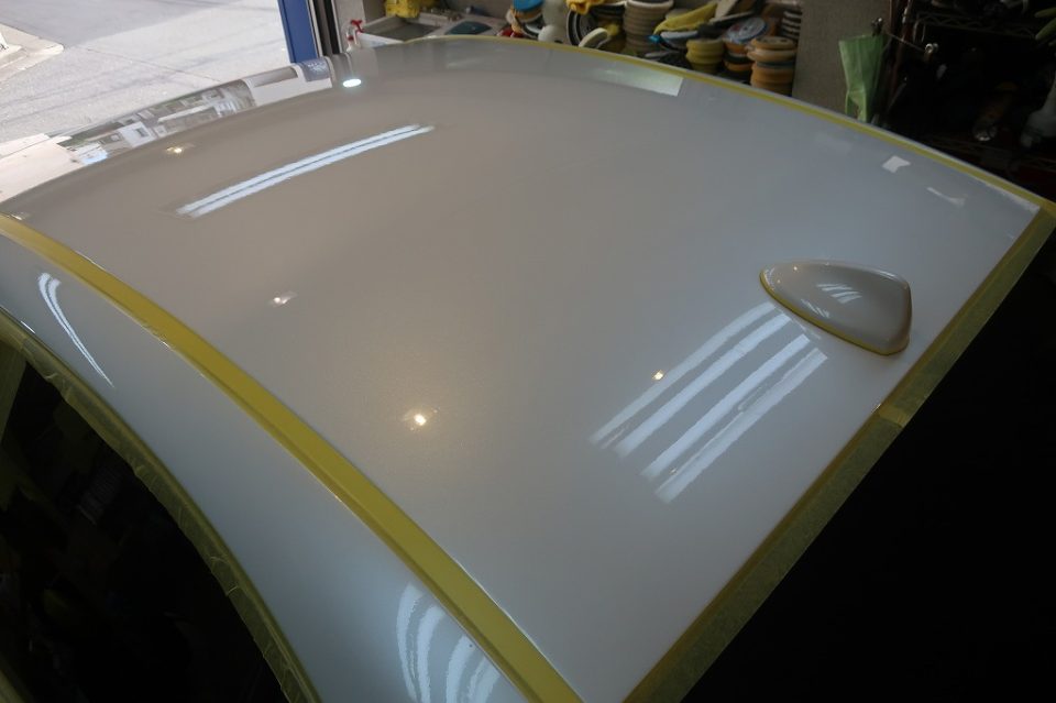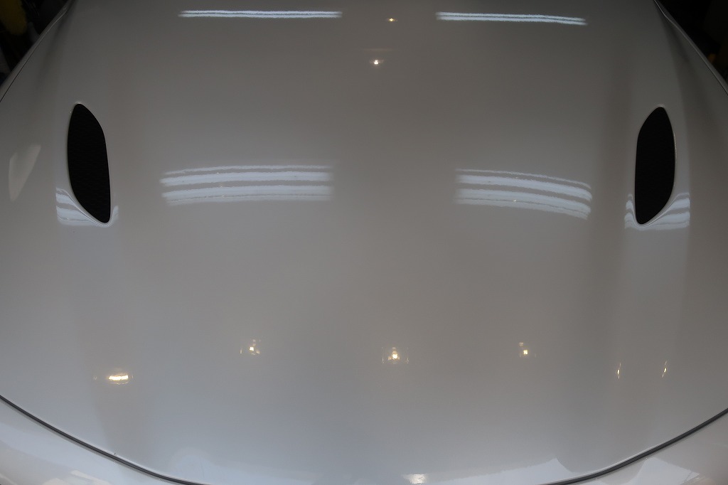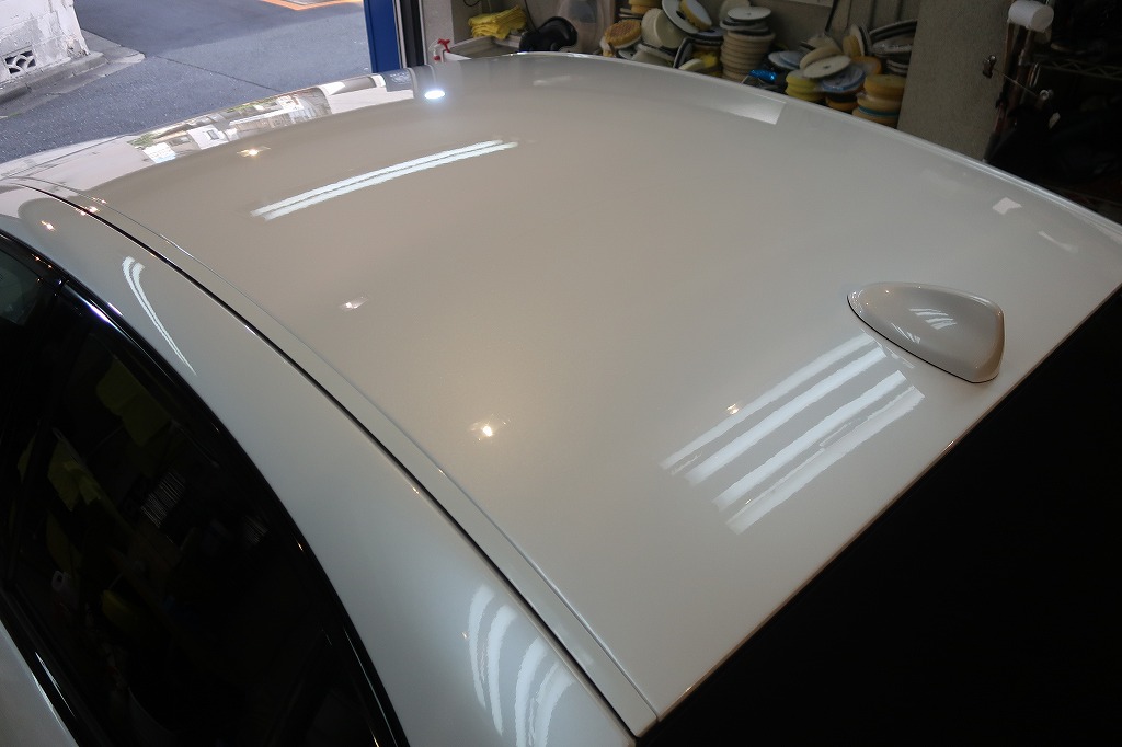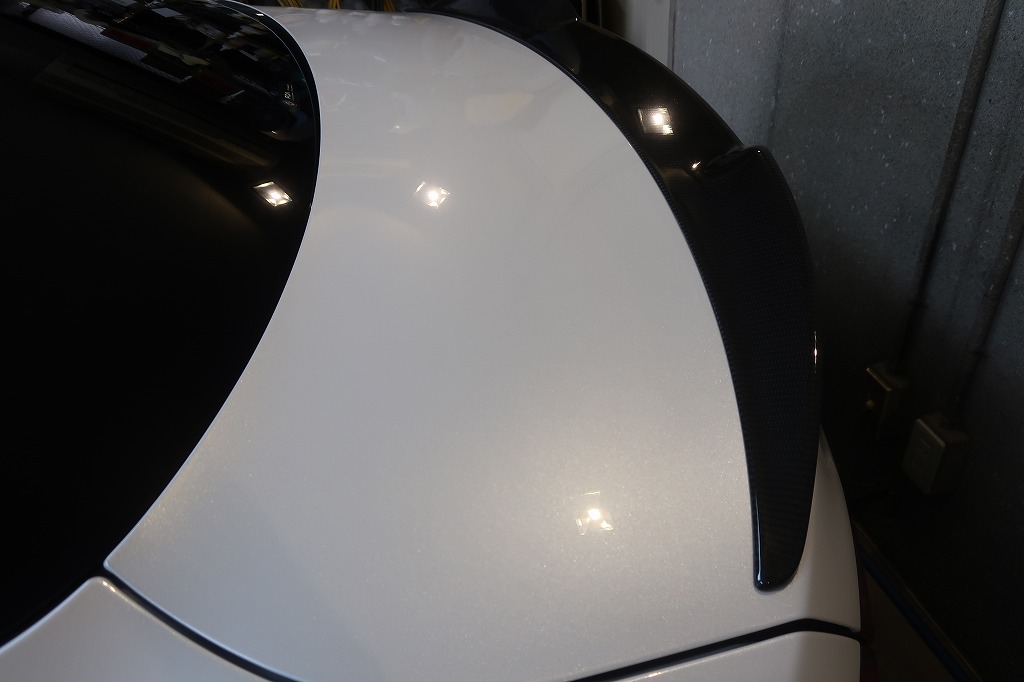美しいトロフェオホワイトのボディが、ガラスコーティングでさらに深みのある艶に仕上がりました