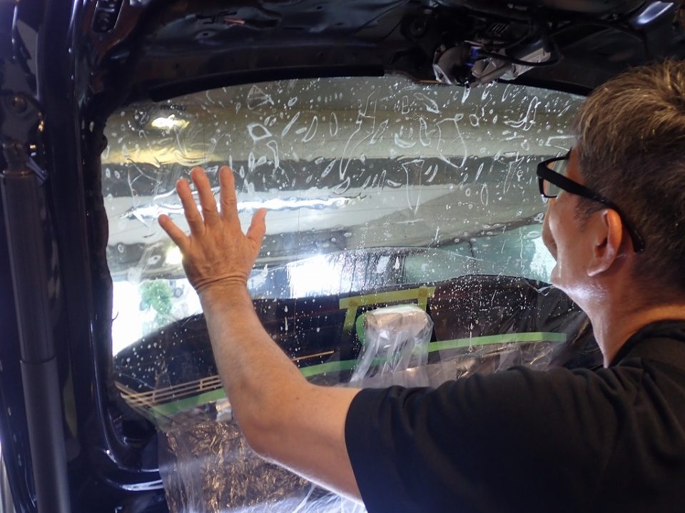 そのため今回は、フロントガラス・リアガラス・クォーターガラスの4面のみを