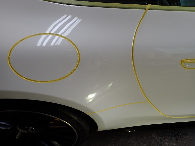 車のコーティングではマスキング作業が重要です、特にプレスラインやエッジ部分は要注意