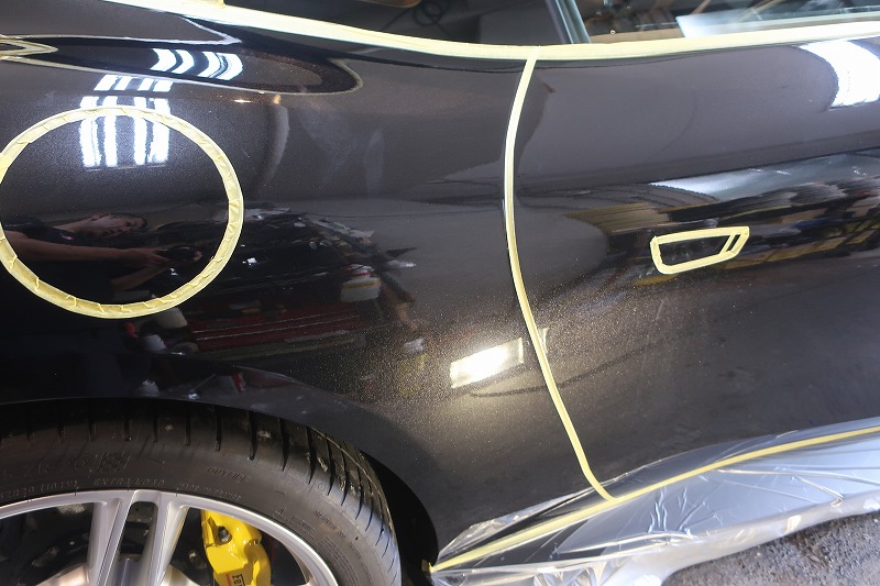 車のコーティングではマスキング作業が重要です、特にプレスラインやエッジ部分は要注意