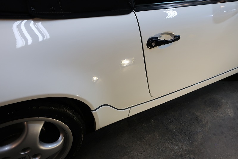 車のコーティングではマスキング作業が重要です、特にプレスラインやエッジ部分は要注意