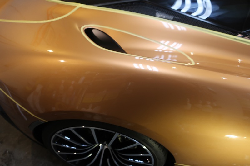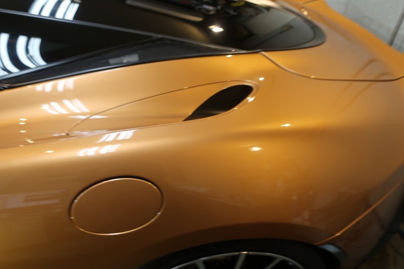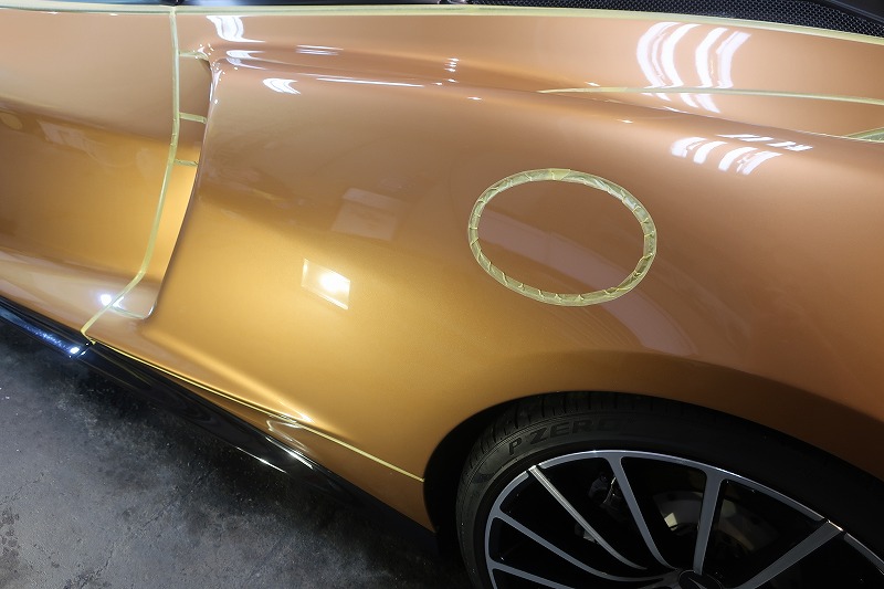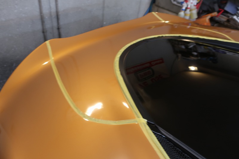 マクラーレンのような鋭いプレスラインを持つお車では、この丁寧な養生こそが品質の要