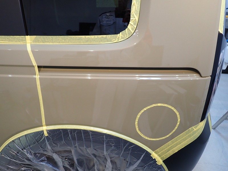 車の美しさを引き出す研磨作業において、専用テープでパーツを保護する「マスキング」は非常に重要です。一部のショップでは省かれがちな地道な作業ですが、角(エッジ)やプレスラインなどの繊細な部分を徹底的に守るこのひと手間こそが、塗装への無用なダメージを防ぎ、ハイクオリティな美観を生み出す秘訣です。