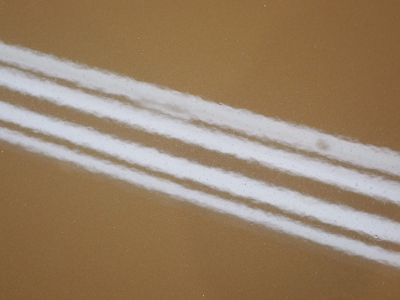 加えて、表面には雨ジミ(ウォータースポット)などのダメージも確認されます。